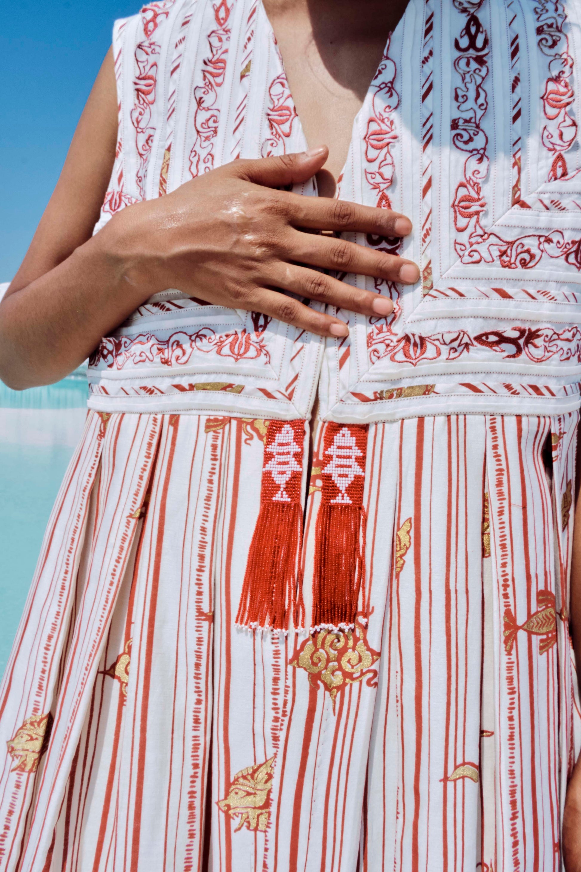 • Hand-beaded tassels